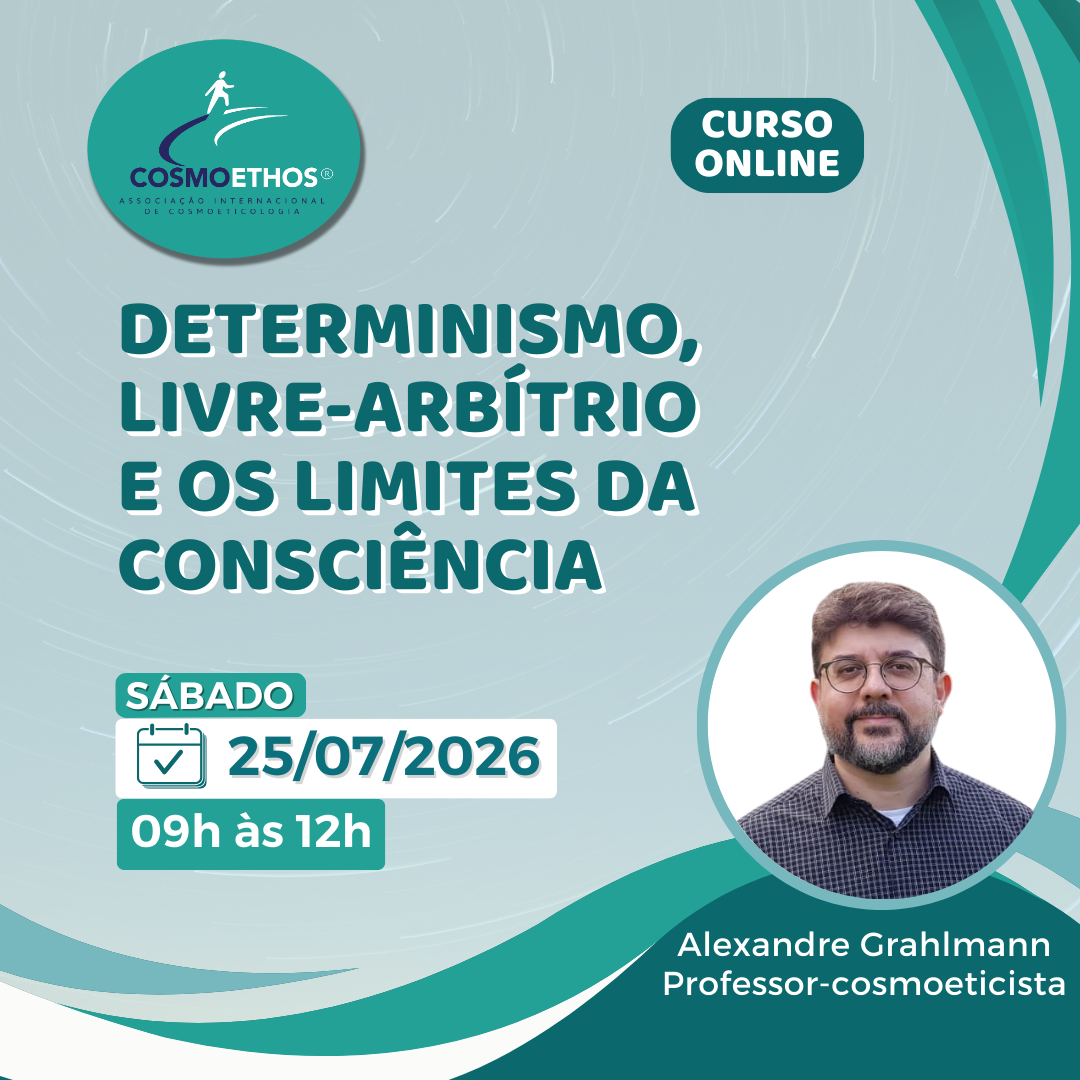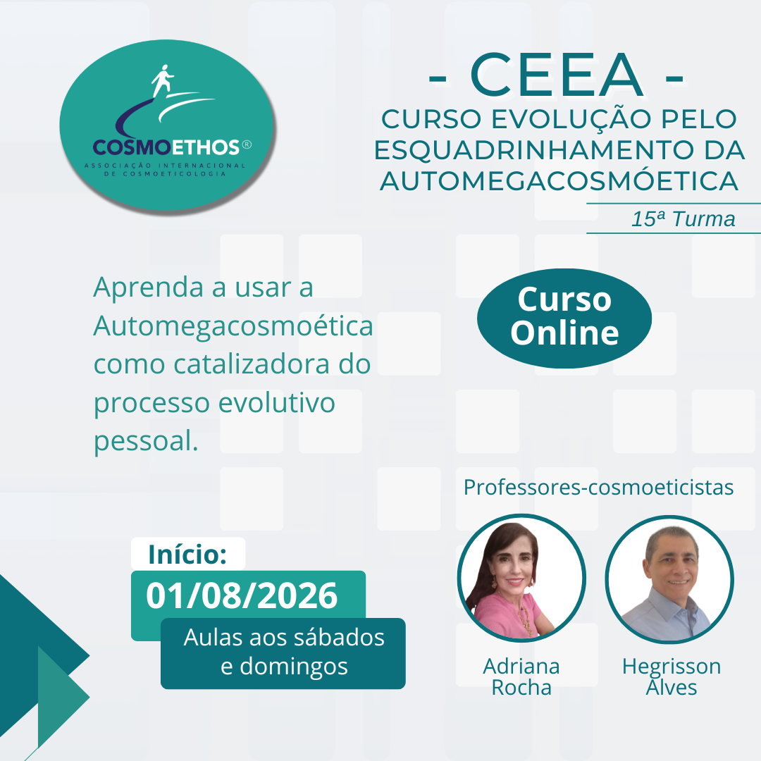 Curso Online com o Prof. Cosmoeticista Alexandre Grahlmann Investimento: R$ 150,00 Inscrições pelo link: https://www.asaas.com/c/f4380b082aaf74na Ou pelo Pix da Cosmoethos: CNPJ.: 23664319000117 Desconto de 40% para longevos (60+) e 25% para alunos que estejam repetindo o curso! Mais informações através do WhatsApp da Cosmoethos: (54)99350-2924